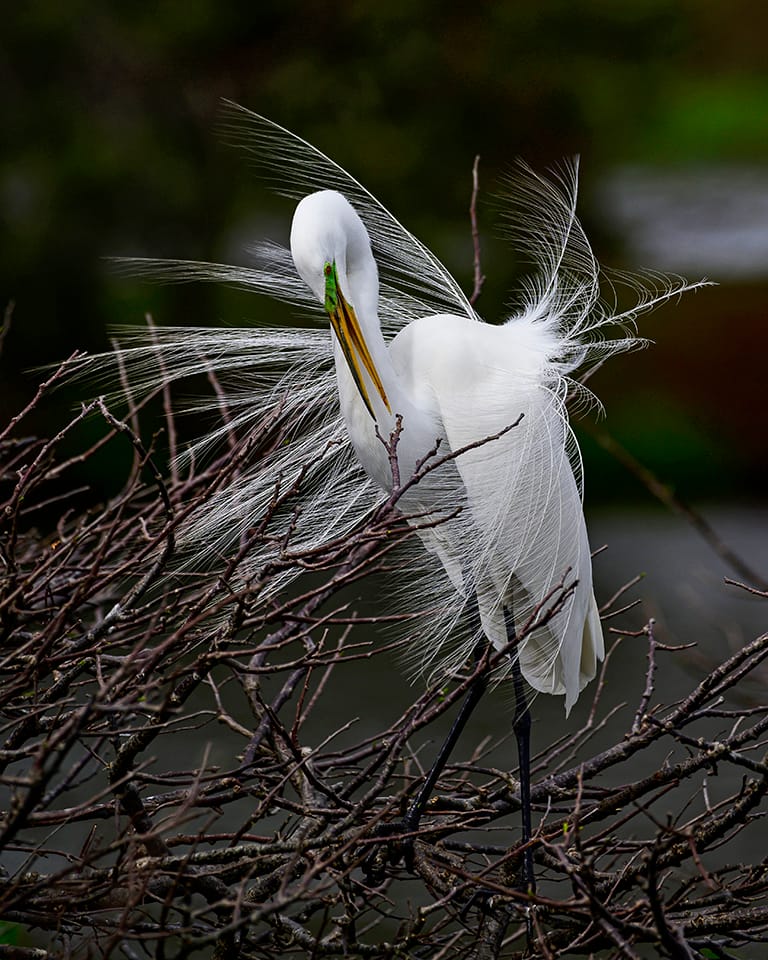 Jalohaikara esittelee soidinasuaan (Great Egret displaying breeding plumage)