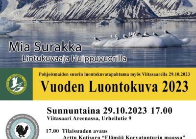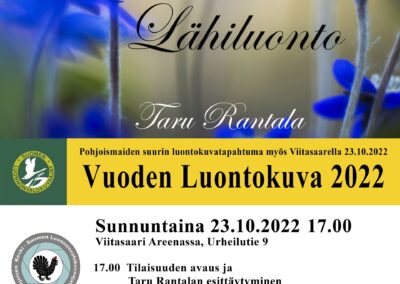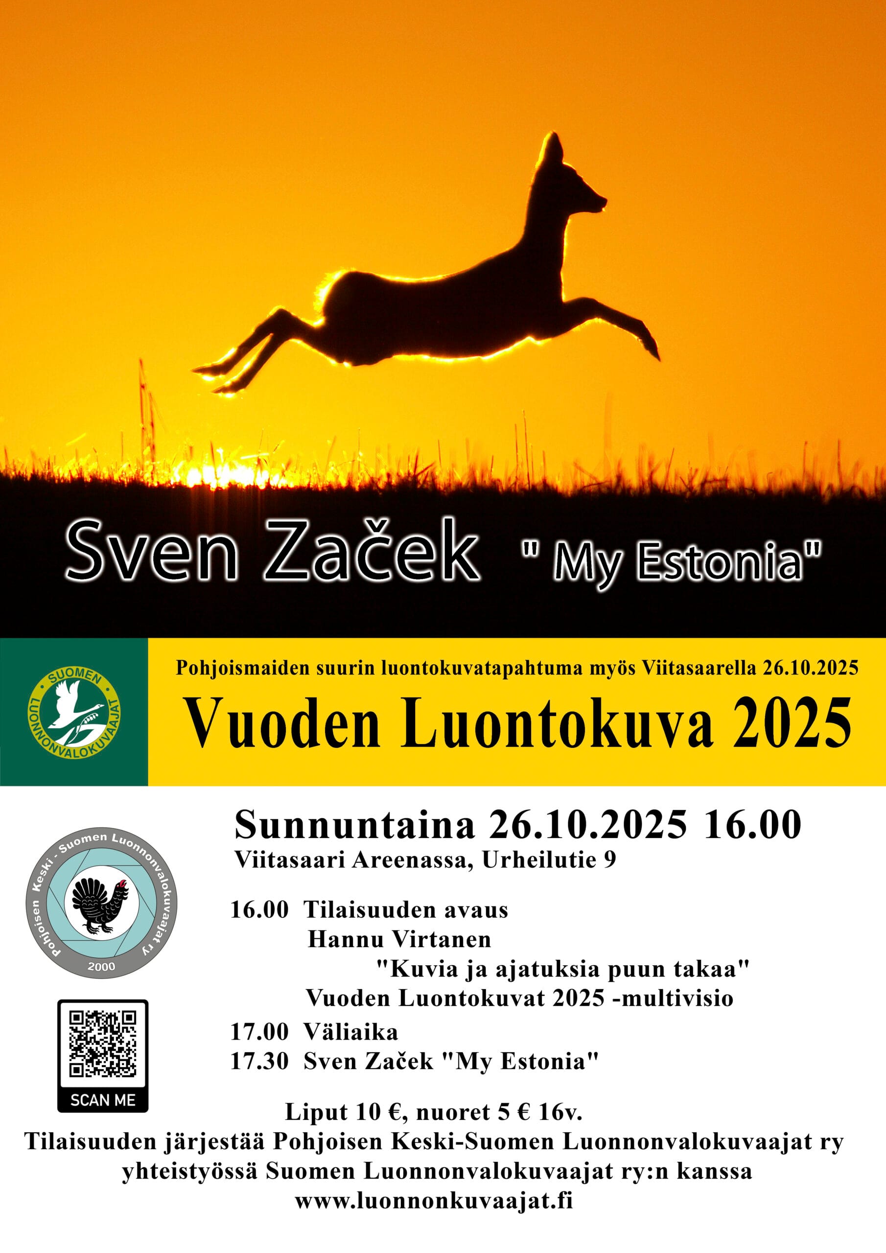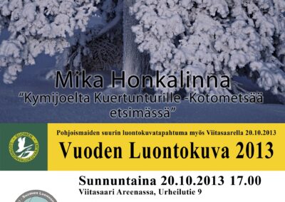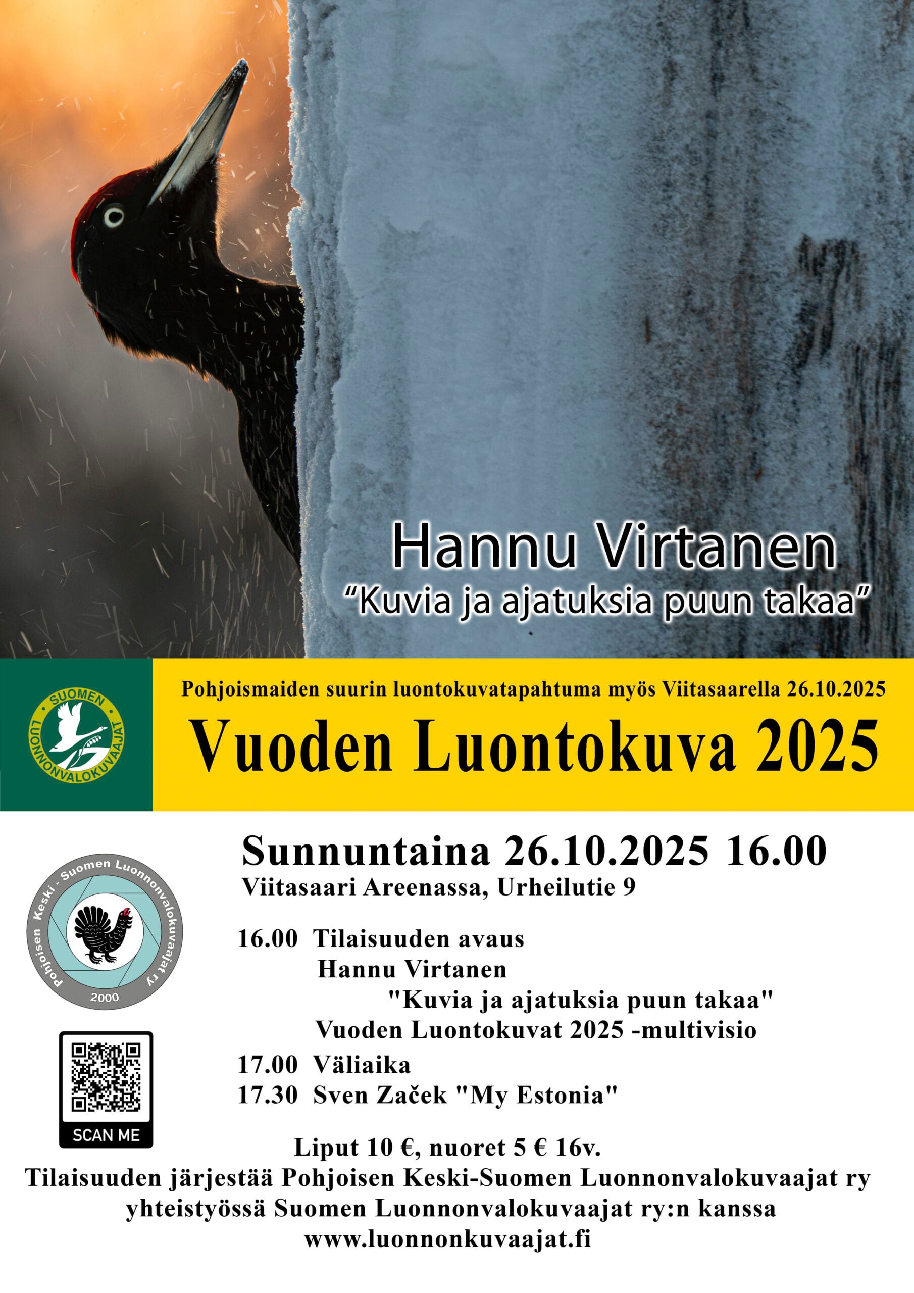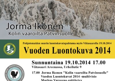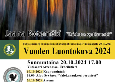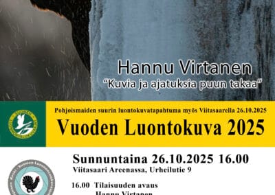Tilaisuuden järjestää Pohjoisen Keski-Suomen Luonnonvalokuvaajat ry yhteistyössä Suomen Luonnonvalokuvaajat ry:n kanssa.